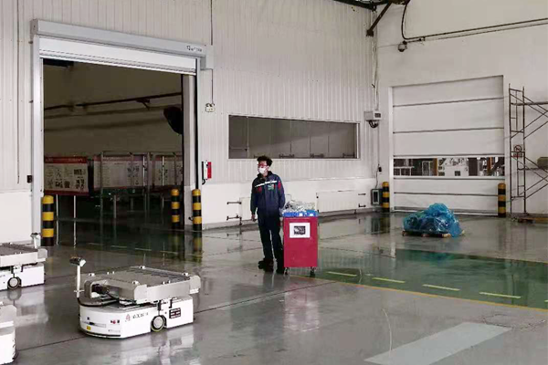 西朗门业快速门能与AGV小车联动,门随车自动、即时启闭