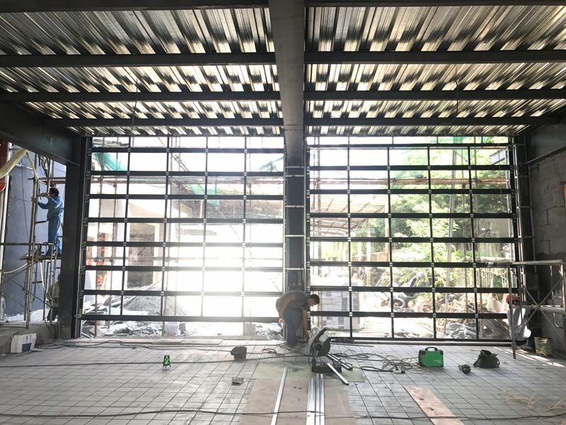 常州4S店透明提升门安装现场、透视提升门、透明滑升门。