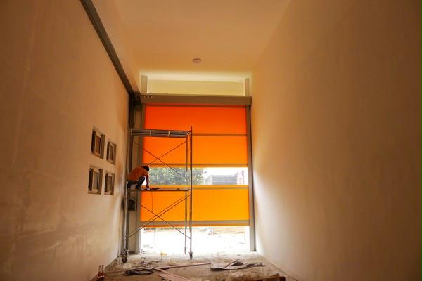 下图:汽车零部件生产车间快速通道的快速卷帘门,由西朗门业安装团队正在安装: