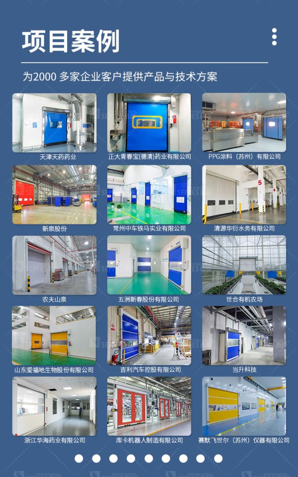洁净快速门是西朗门业的一款可以自动复位的快速门,它的主要特点就是导轨拉链式的结构,就是像我们所穿的衣服上的拉链一样,可咬合的结构,密封性突出,可以在减少能耗损失的情况下,提供高效的物流出入口,保持室内的原有温度和洁净度。