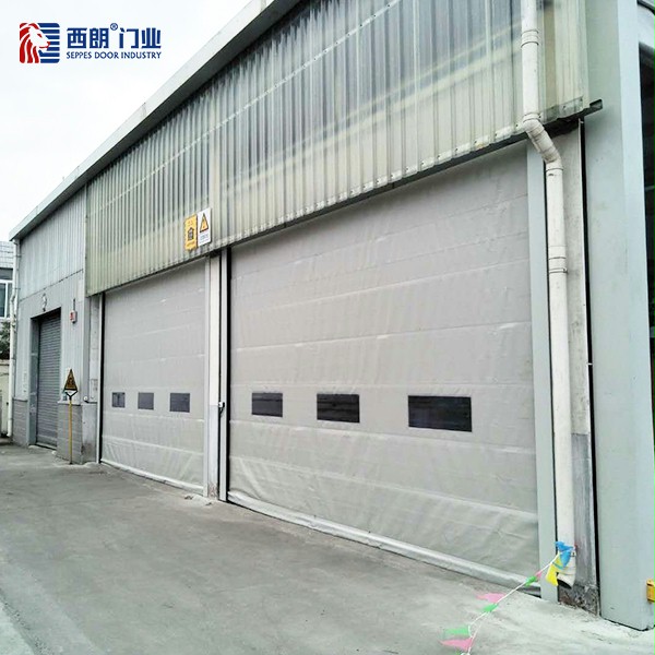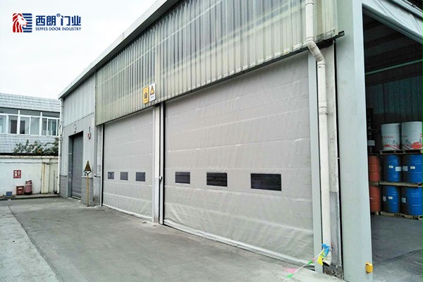 超大快速堆积门、折叠门,适合大型车间及超大内部环境阻隔封闭,门帘由轻质尼龙纤维织物及钢质抗风杆组成,抗风能力强,阻隔面积大,防尘、防虫,保温。西朗门业上海快速堆积门也称背带式堆积门、堆叠式快速门,顾名思义,门帘是分层堆积的上升方式,阻隔和封闭效果是工业门的首选。