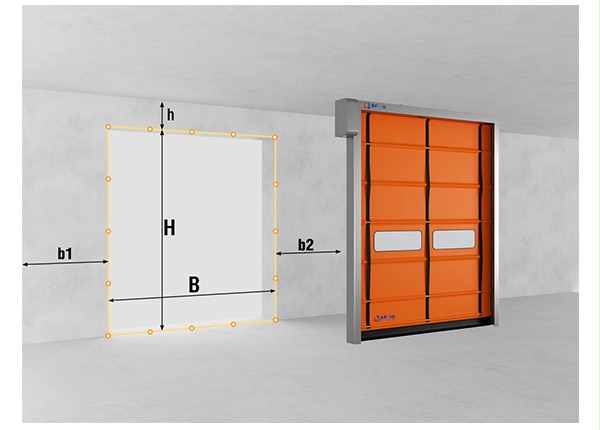 b1/b2是左/右横向距离至少350mm(从门洞对应边缘到障碍物的距离);