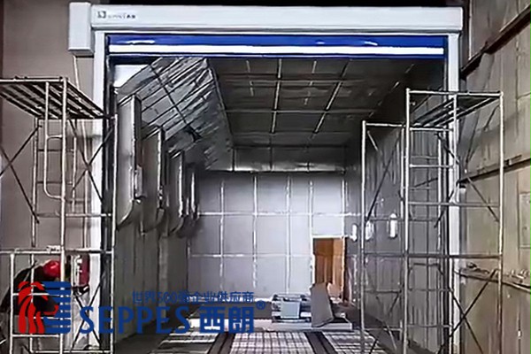 下图是江苏中科机械有限公司安装于喷砂房的快速卷帘门实图。