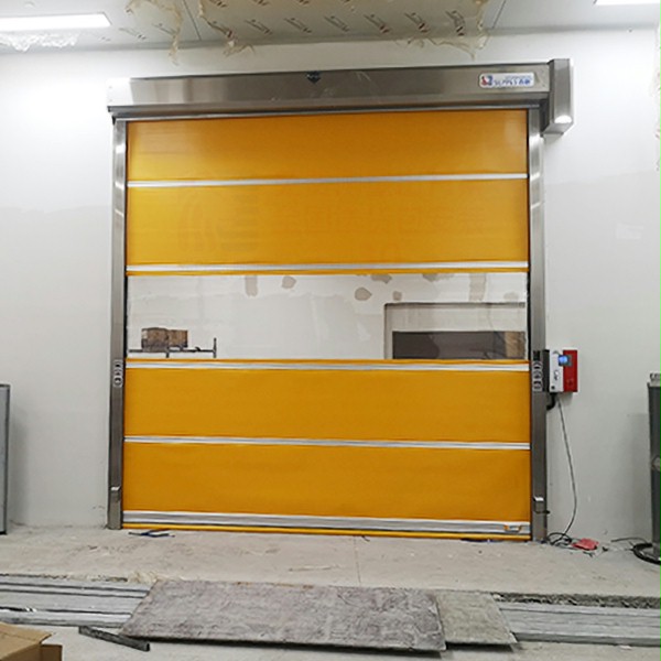 通常快速门是与洁净车间和风淋室一起配套使用的,人员在进入洁净区域之前,必须经过风淋室进行吹风,减少人员身上所带来的污染,以及身上所携带的灰尘,以此来保证车间内部符合生产加工的洁净度要求。