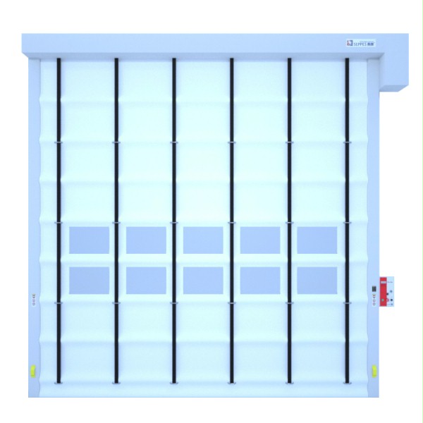 西朗门业生产的背带式快速堆积门,采用折叠式提升方式和多条内置式横向抗风杠杆,其风压可以均布于门帘整体,其抗风性能远高于普通滚筒式快速卷门,特别适合于物流通道,和大面积的洞口。插入式门帘更容易拆卸,维护更加方便。