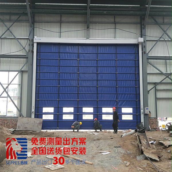 背带堆积快速门采用折叠式提升方式和多条内置式横向抗风杠杆,起风压可以均匀分布于门帘整体,其抗风性能远高于普通滚筒式快速卷帘门,特别适合于物流通道和大面积的洞口,既满足了叉车频繁的通过,又保证了仓库内的温度和洁净度,另外对防风、防尘、保温、降噪、恒温恒湿、隔离异味、节约能源等都具有明显效果。