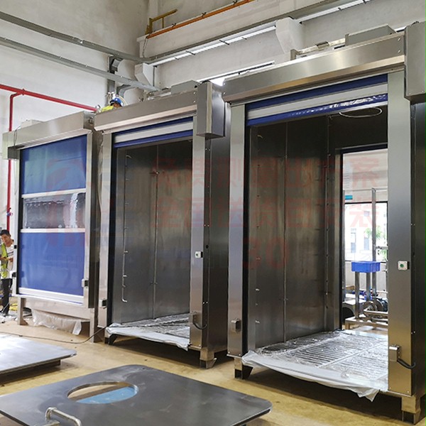 设备联动快速门是一种安装在加工设备上的PVC软质快速卷帘门。能与设备的控制系统进行联动作业,可很大幅度的提升设备的工作效率。门框上装有红外保护安全装置,对人员保护起着很重要的作用,避免对人员造成伤害。