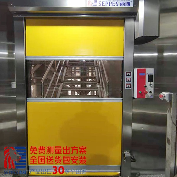 快速门又称为快速卷门、高速门、高速卷门,是通过PLC、变频器、编码器控制(PVC材质)门帘快速升降,并准确定位的一种工业门,多用于食品、电子、印刷等对环境要求较高的场所,主要作用是起快速隔离的作用从而保证车间空气质量无尘等级。